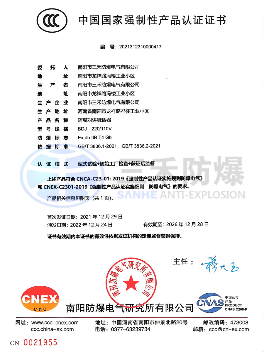 防爆控制箱3C認(rèn)證