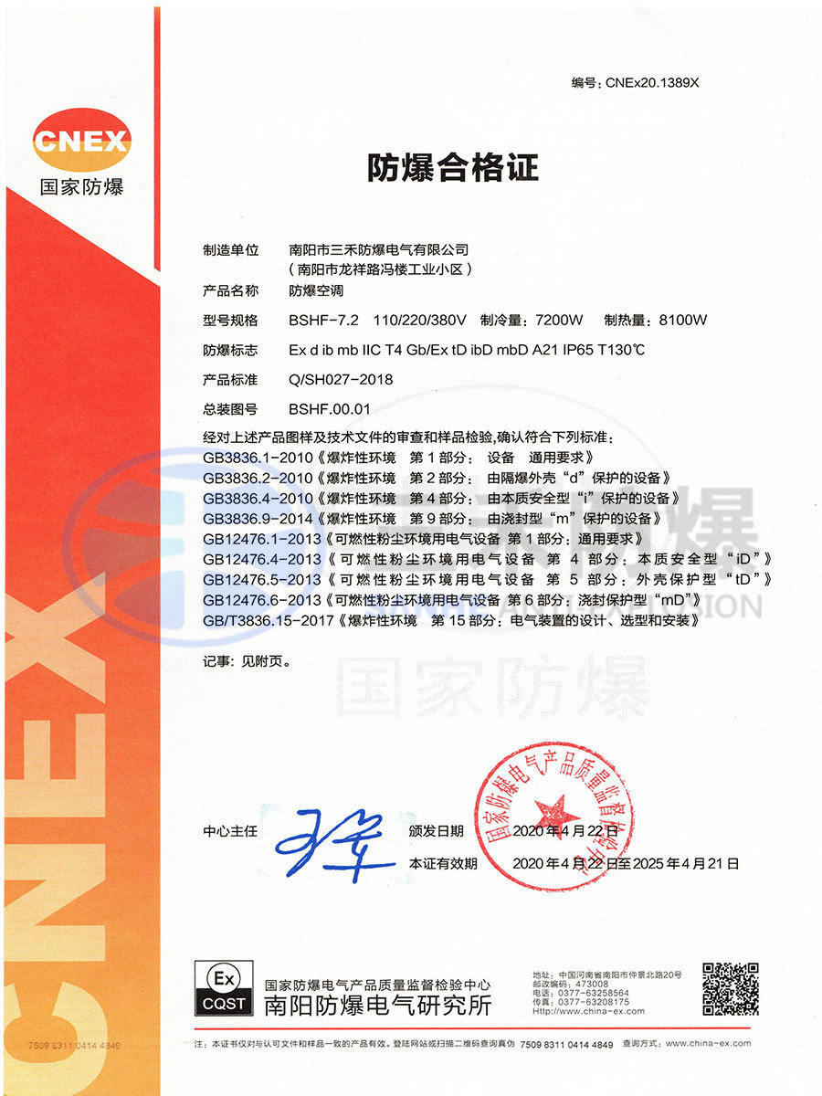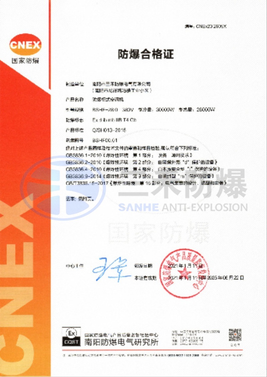 粉塵防爆IIC空調(diào)證
